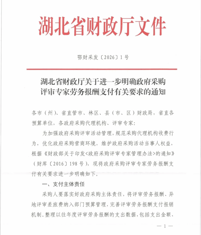 附件【湖北省财政厅关于进一步明确政府采购评审专家劳务报酬支付有关要求的通知.pdf】已下载次